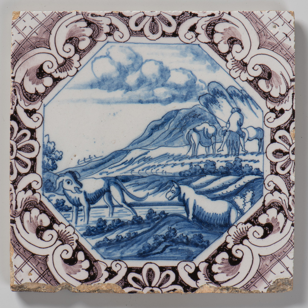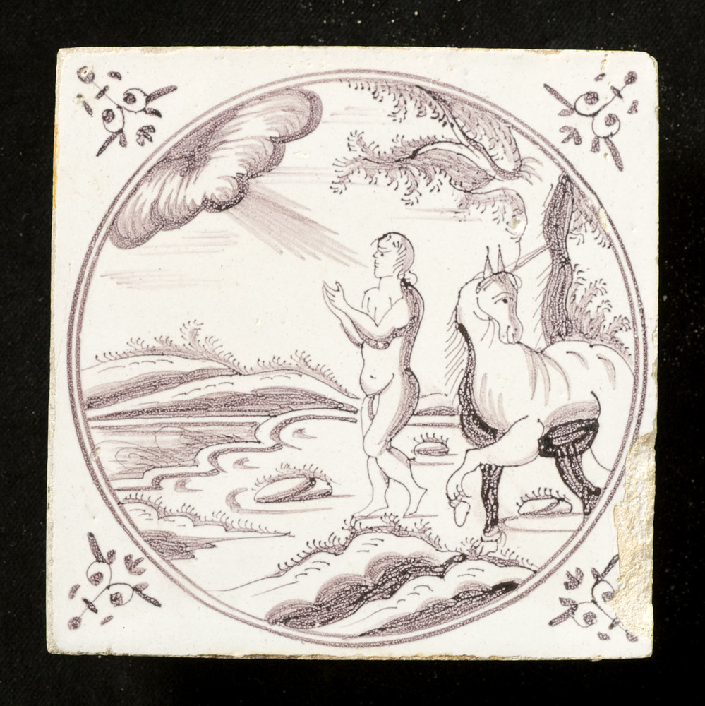 Tegelveld van keramiek, tinglazuur, voorstellende ee...