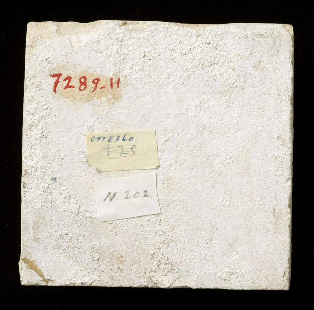 tegel van aardewerk met tinglazuur, voorstellende: l...