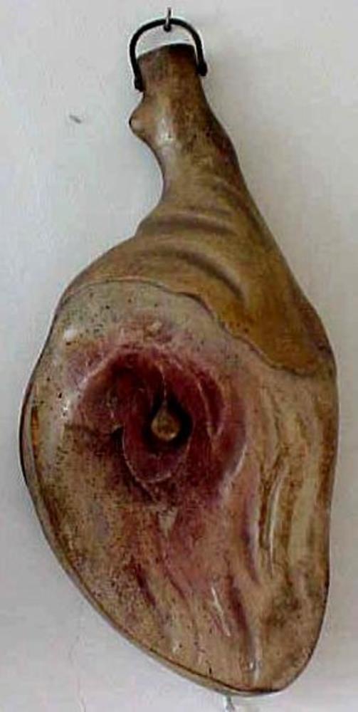 ham van hout in natuurlijke kleur beschilderd hangen...