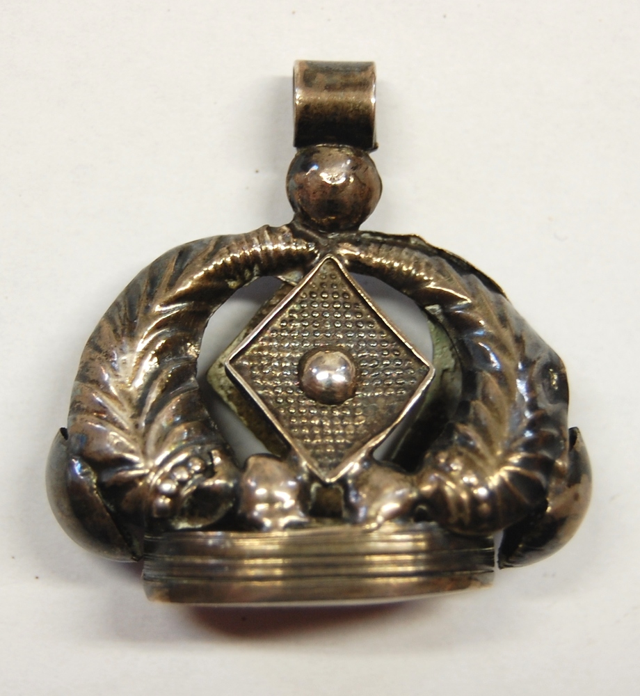 signet van zilver, langwerpig ovaal, bekroond met bl...