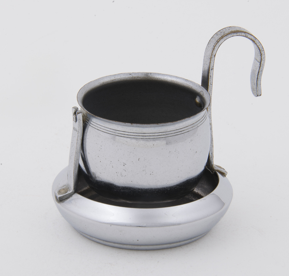 Theezeef met lekbakje van vernikkeld koper, vervaard...