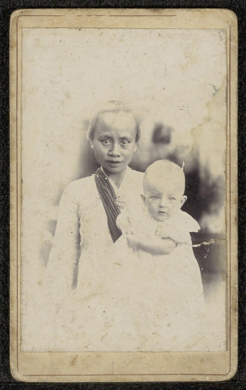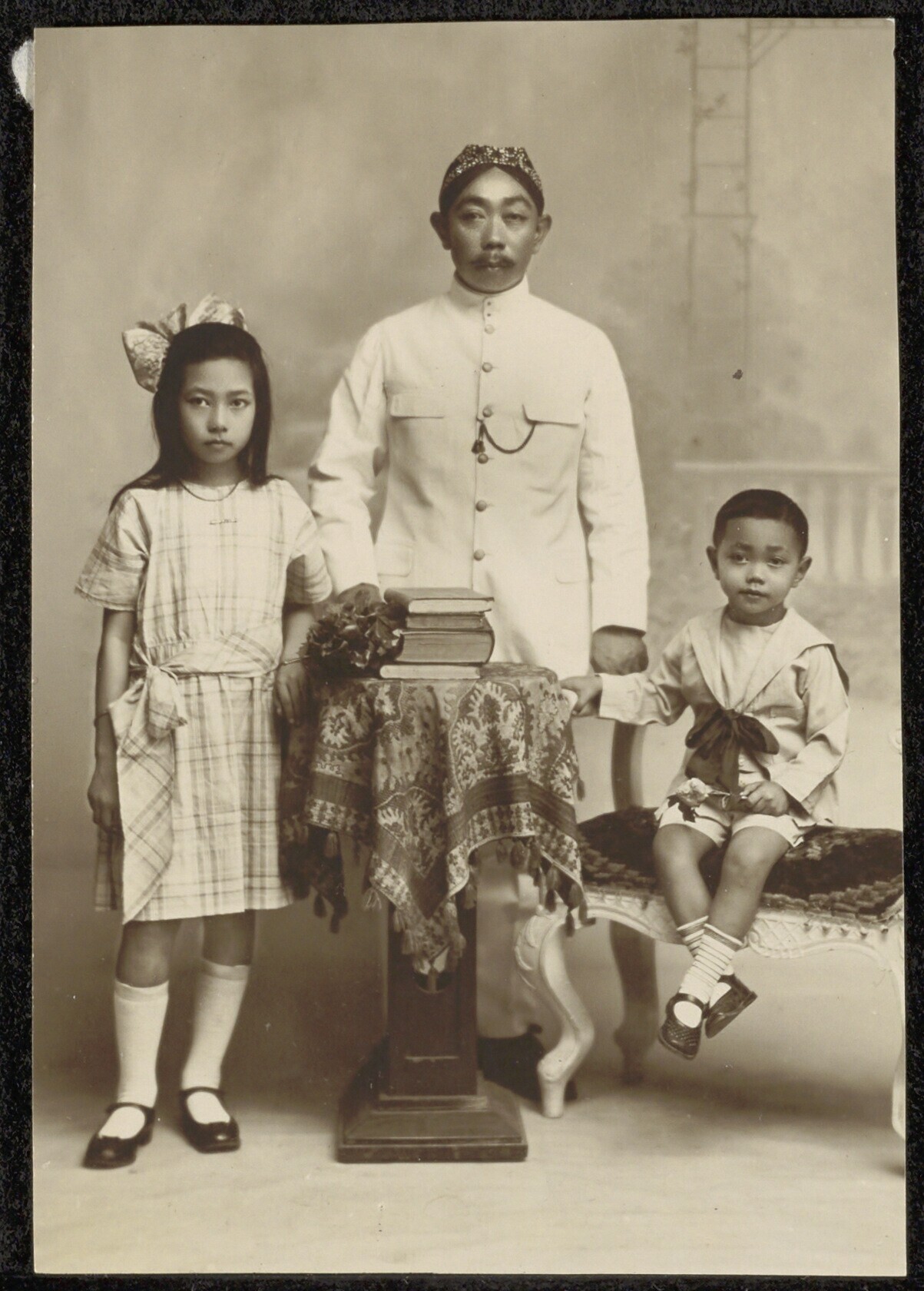 Portret van een Javaanse man met twee kinderen