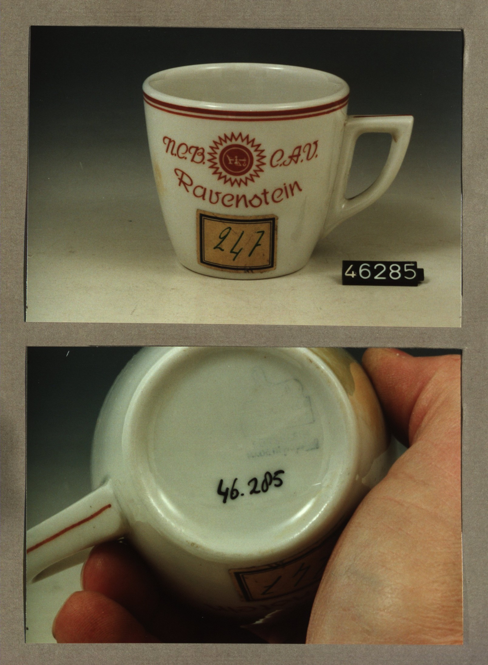 Kop met opschrift, model P met decor N.C.B.-C.A.V. R...