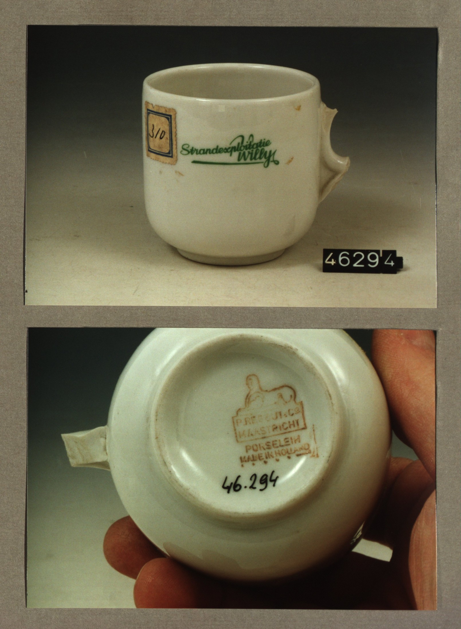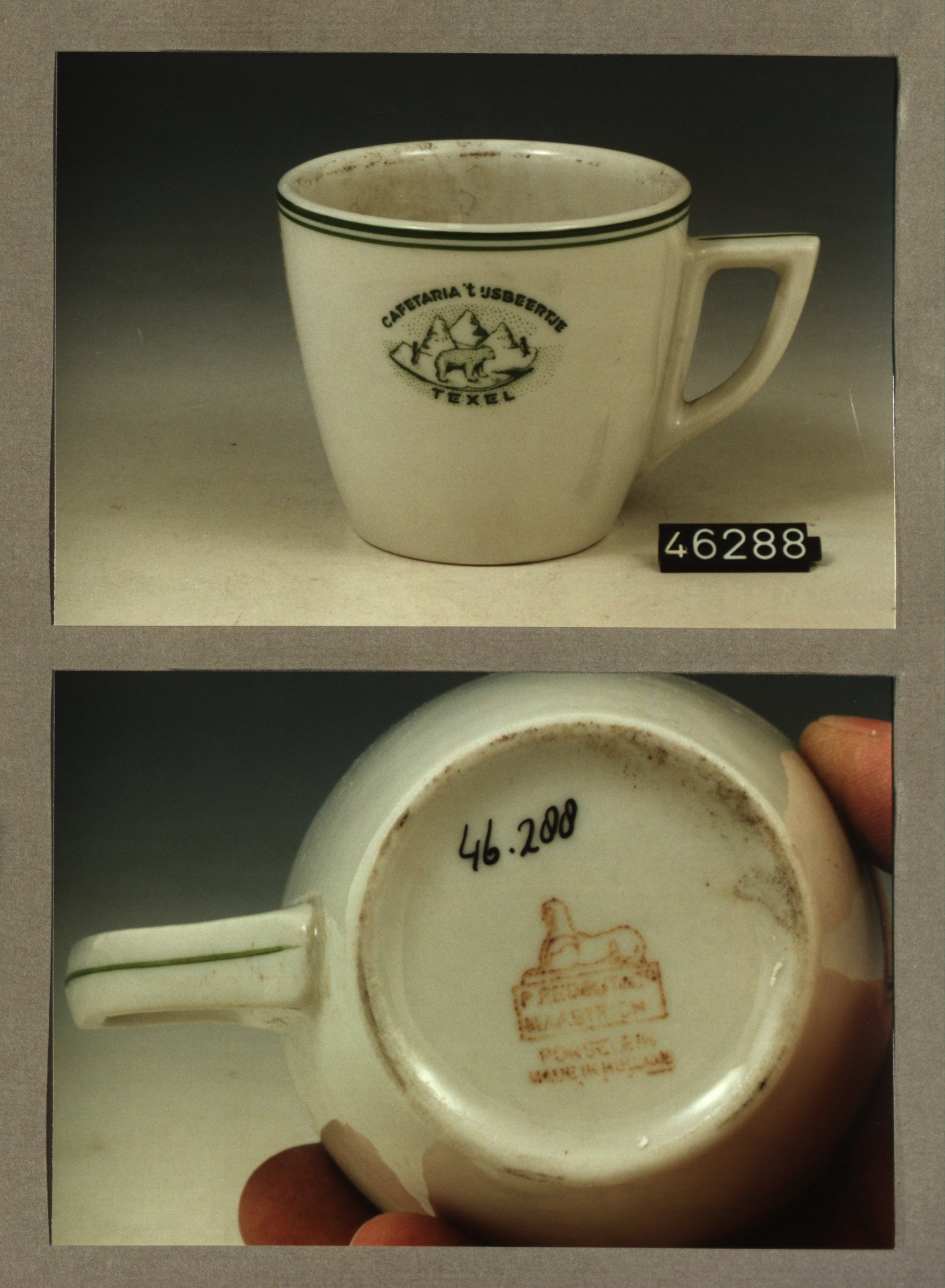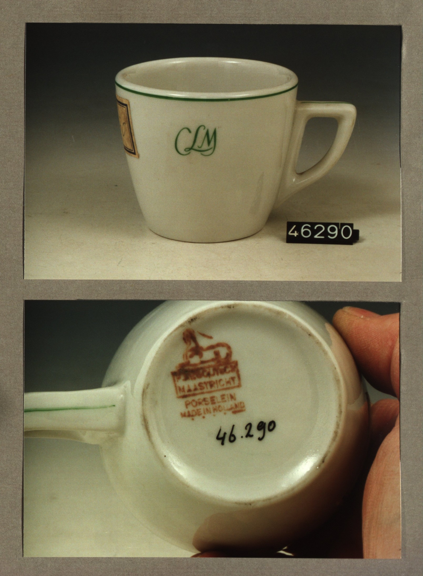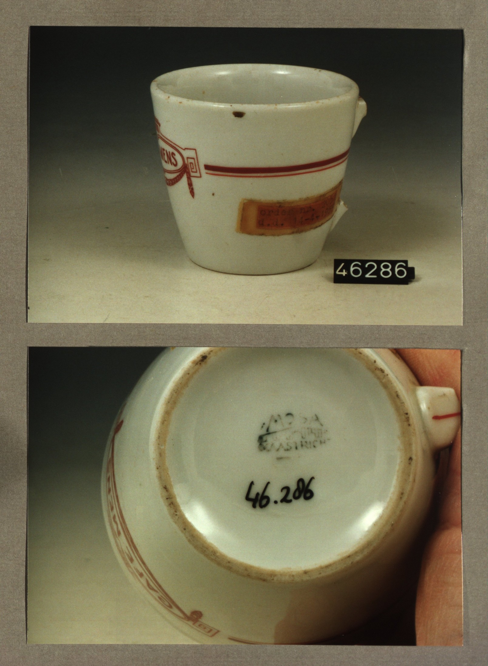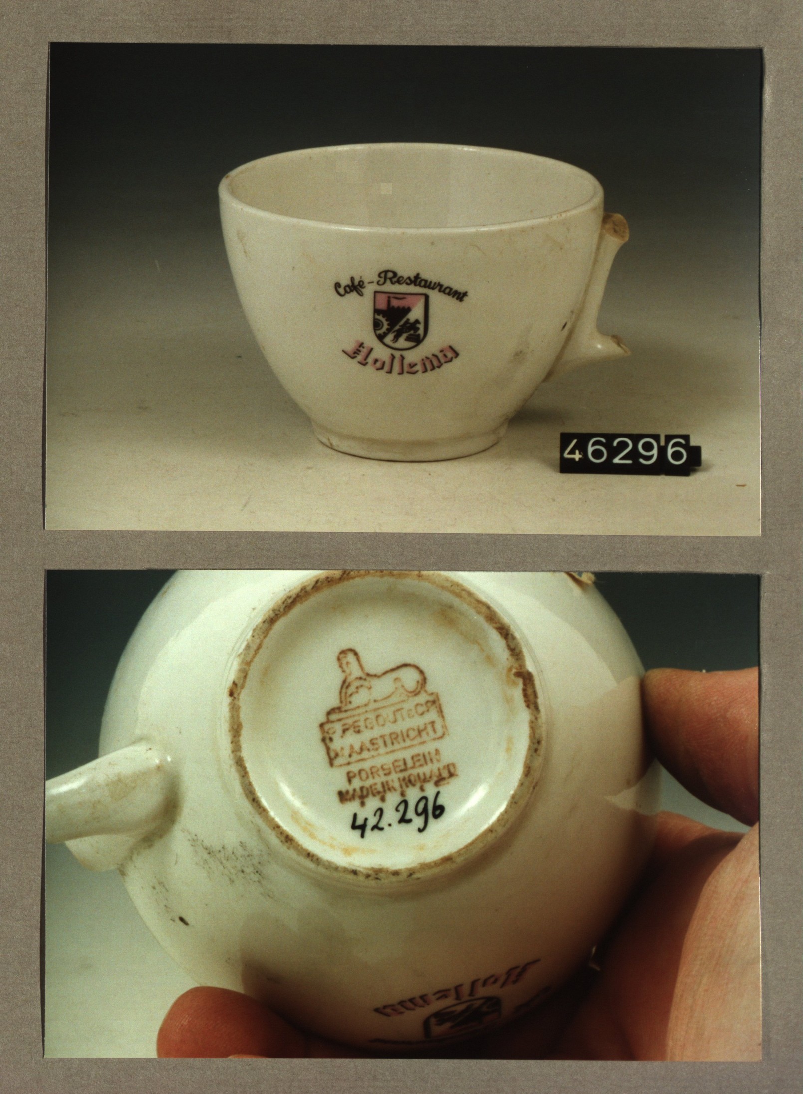 Kop met opschrift, model SMN met decor Hollema cafe ...