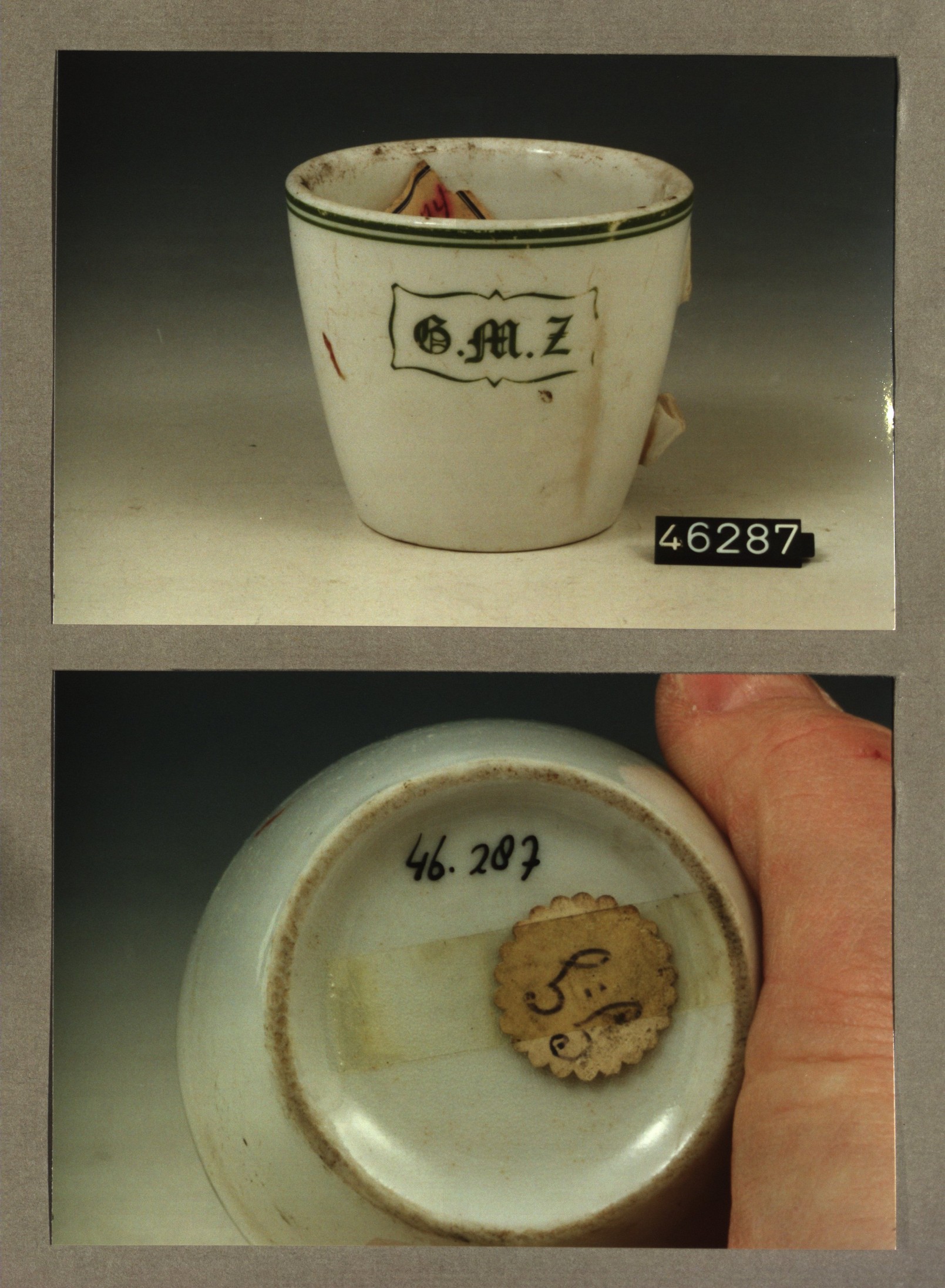 Kop met opschrift, model P2 met decor Gerardus Magel...