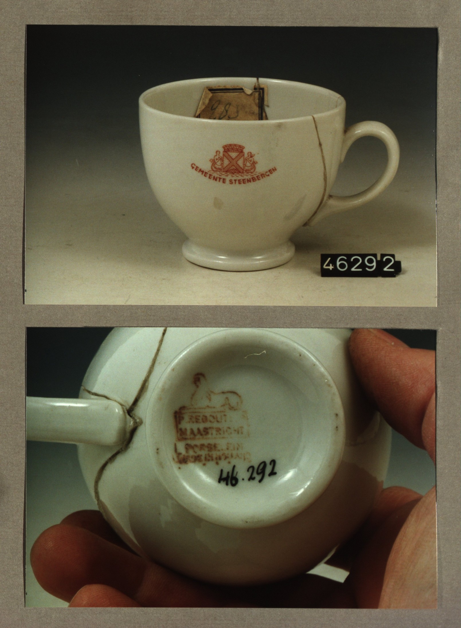 Kop met opschrift, model P2 met decor Societeit Herm...