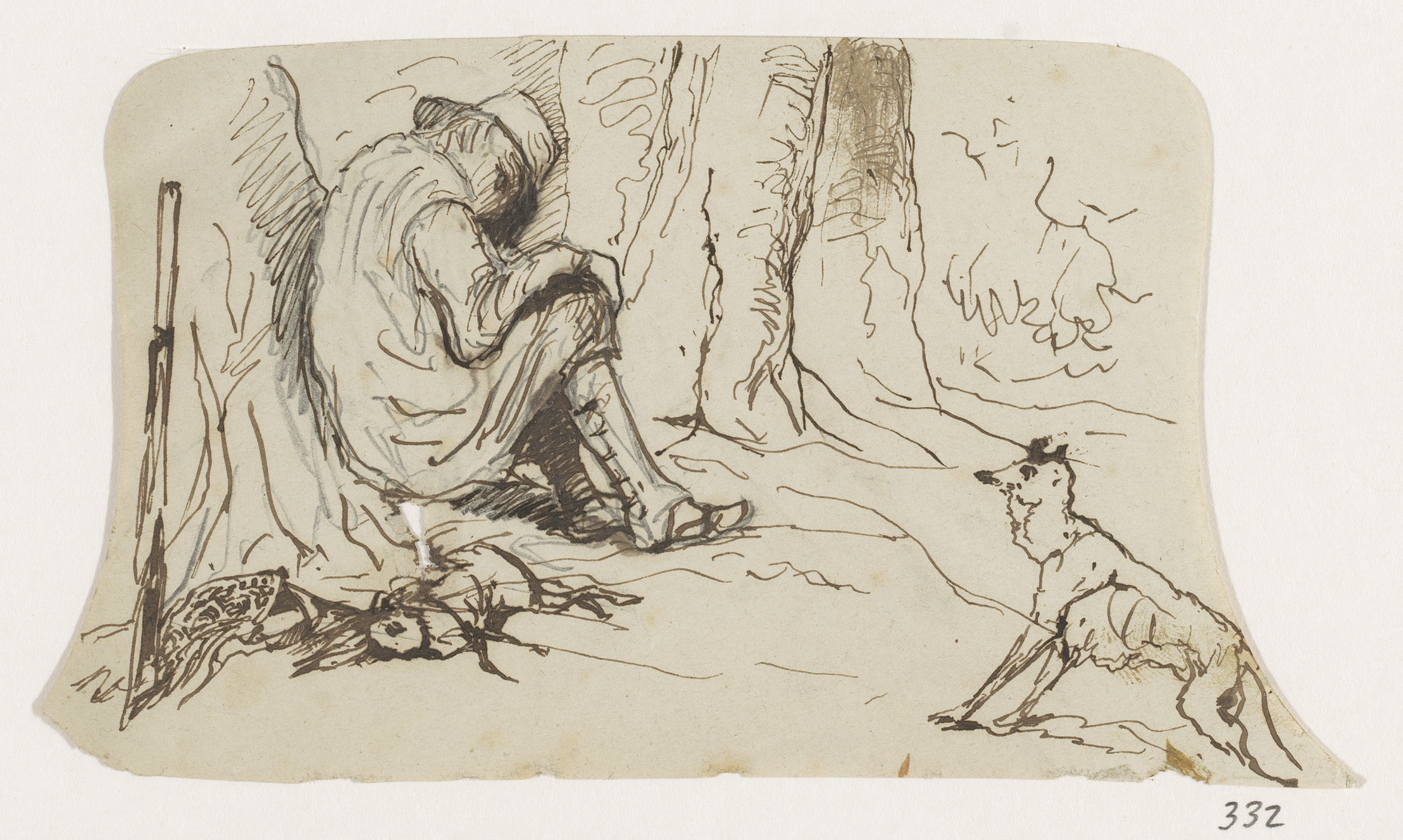 Twee jagers bij een boom