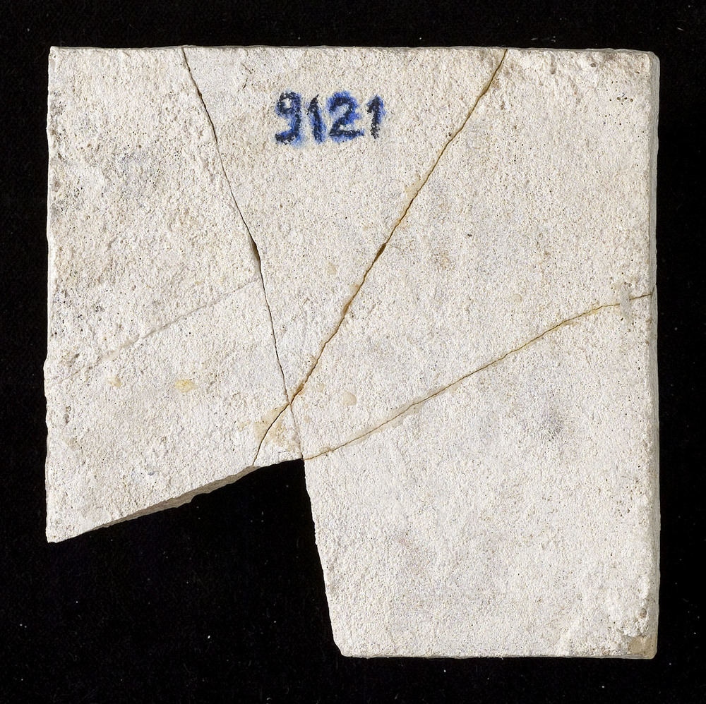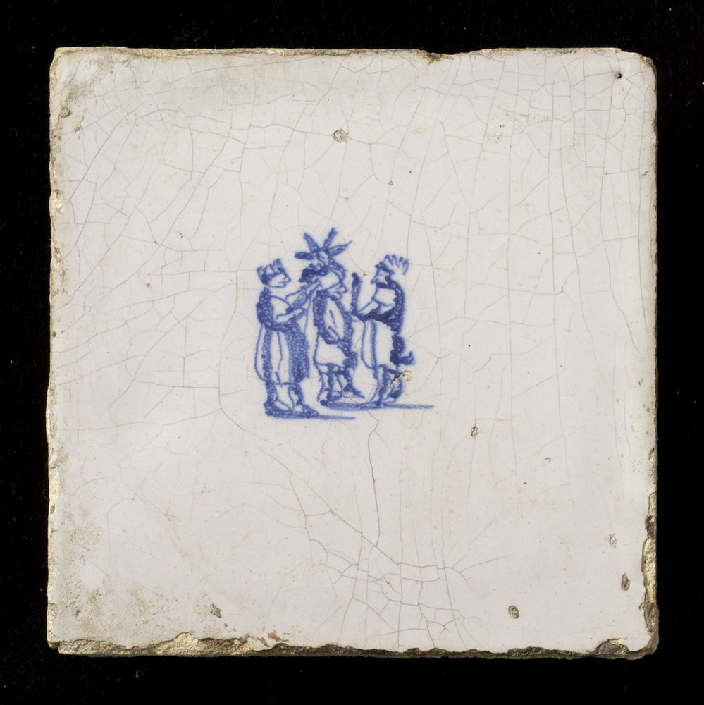 tegel van aardewerk met tinglazuur, voorstellende: k...