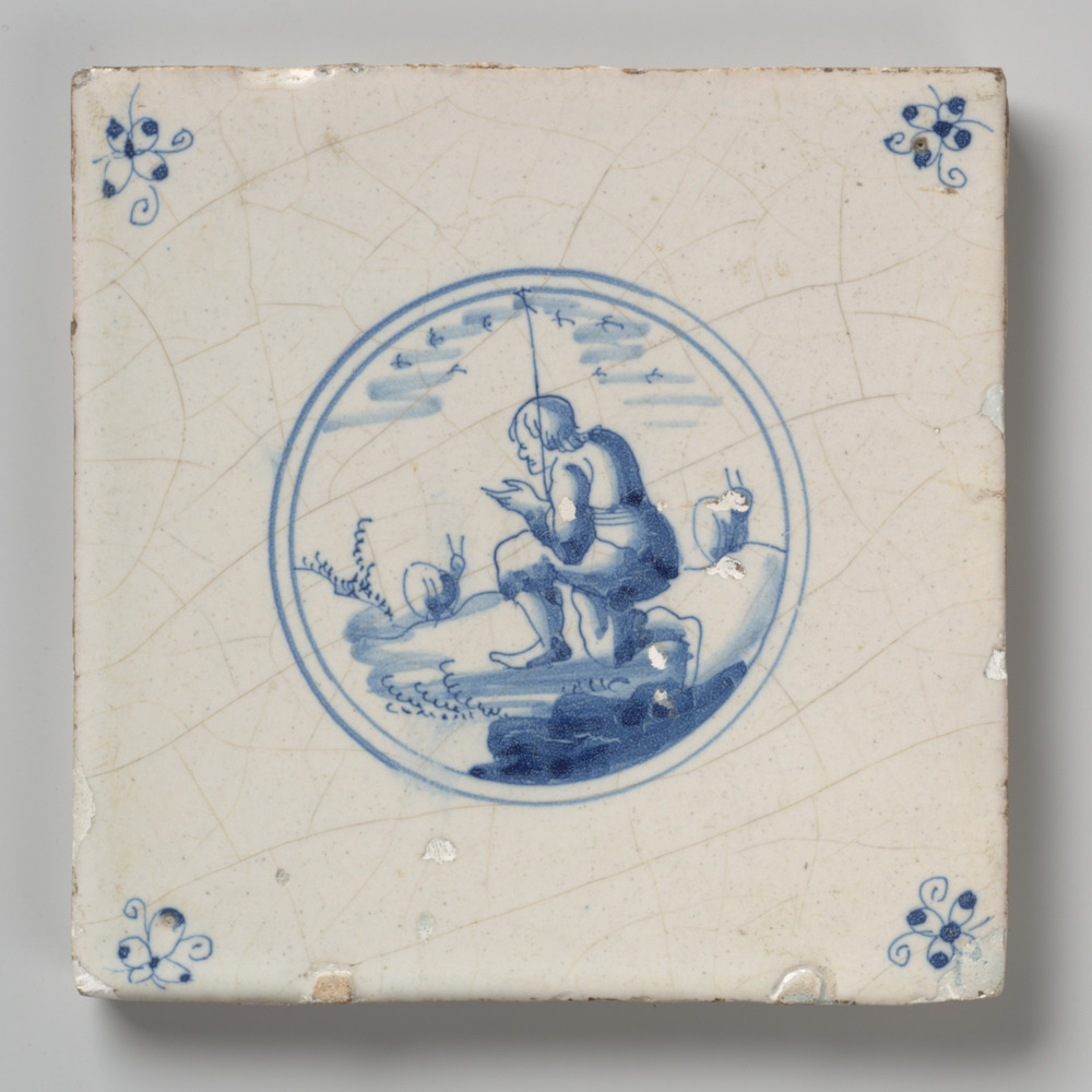 tegel van aardewerk met tinglazuur, voorstellende: h...