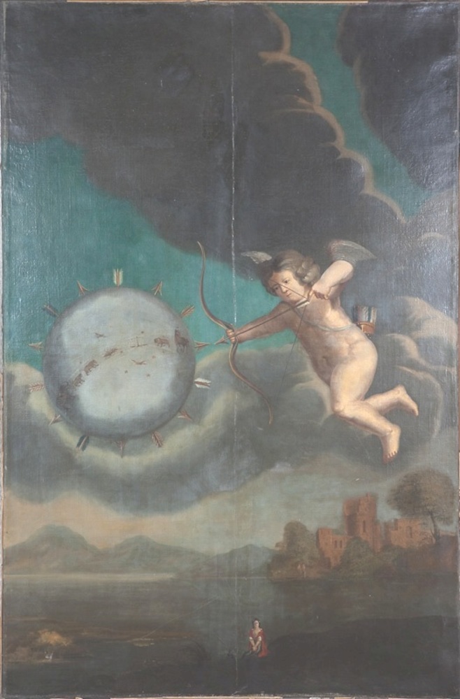 portret van schoorsteenstuk. Doek op olieverf zonder...