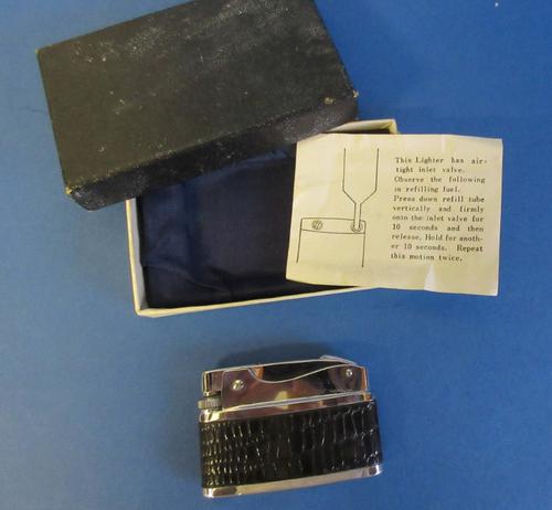 Aansteker. Platte verchroomde aansteker met zwarte ...