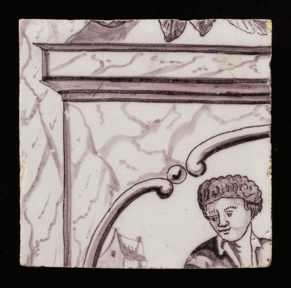 Tegel in tinglazuur, voorstellende een borstbeeld op...