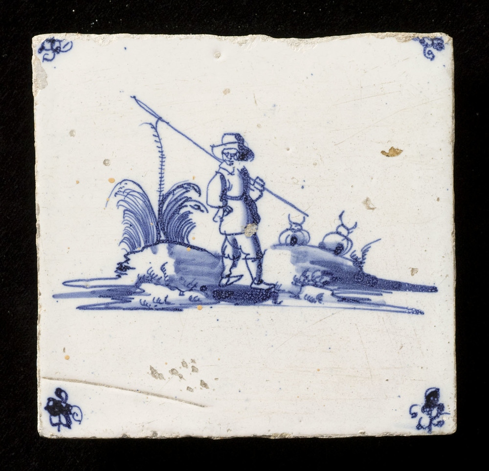 Tegel van keramiek, tinglazuur, voorstellende herder...