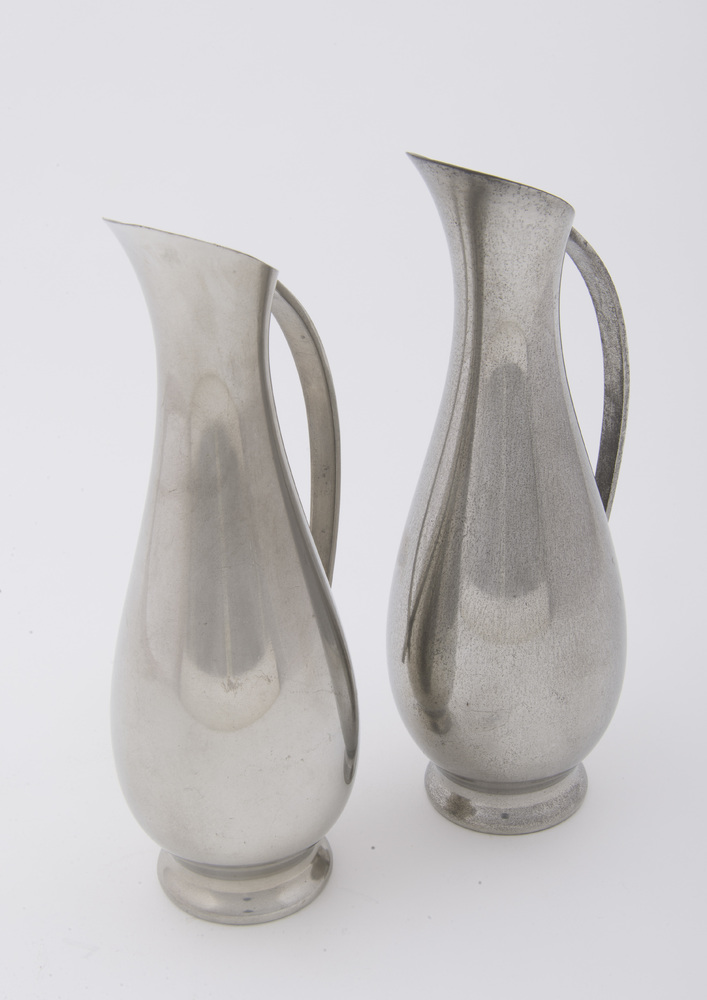 Schenkkan van nieuw tin, vervaardigd door Metaalware...