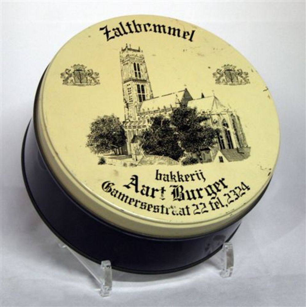 koektrommel. Rond donker model van blik met deksel v...