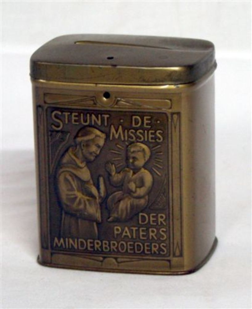 Collectebusje voor de missies met teksten, slotje aa...