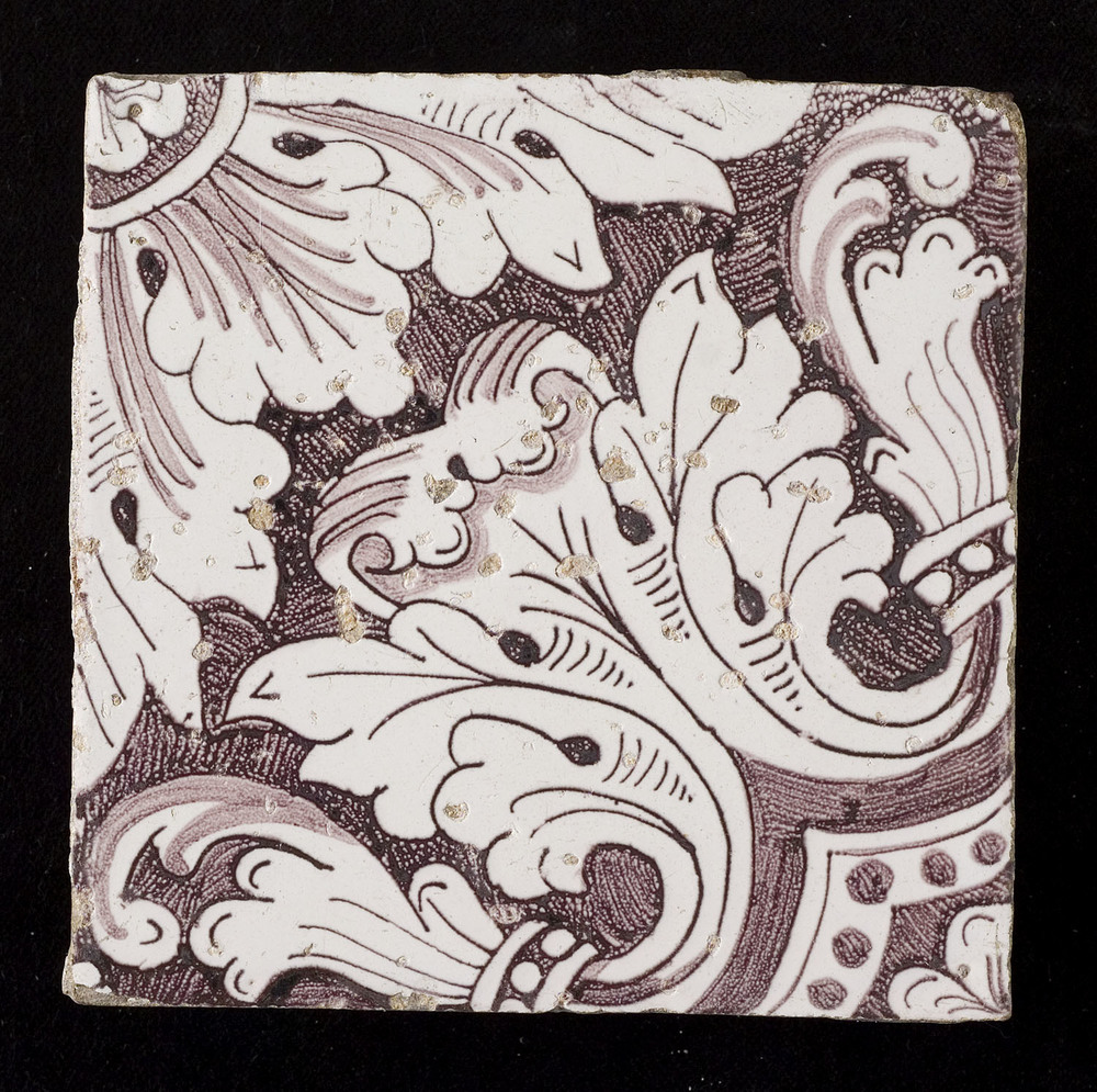 Tegel van keramiek met tinglazuur, voorstellende: or...