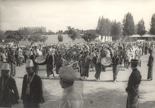 Perzische muzikanten kondigen het middaguur aan, Ira...
