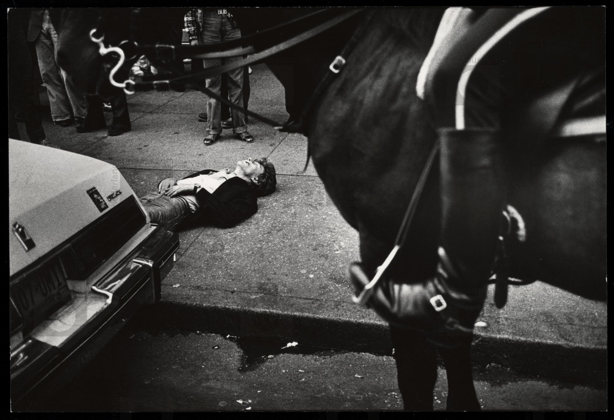 Dode man op trottoir van Broadway, New York (1982)