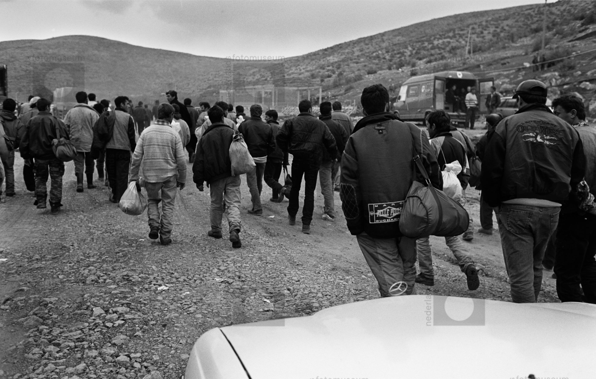Opgepakte Albanezen worden door de Griekse politie d...