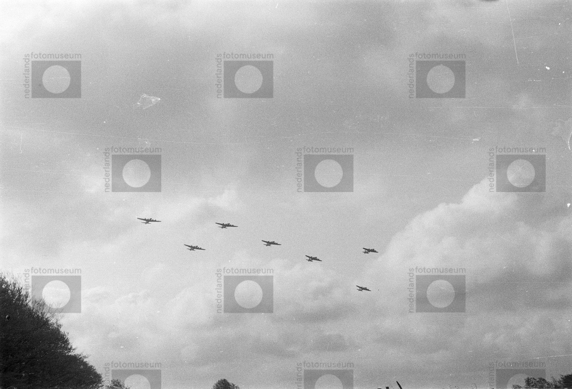 Voedseldropping vanuit geallieerde vliegtuigen boven...