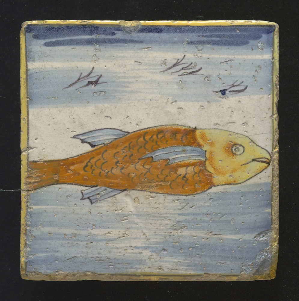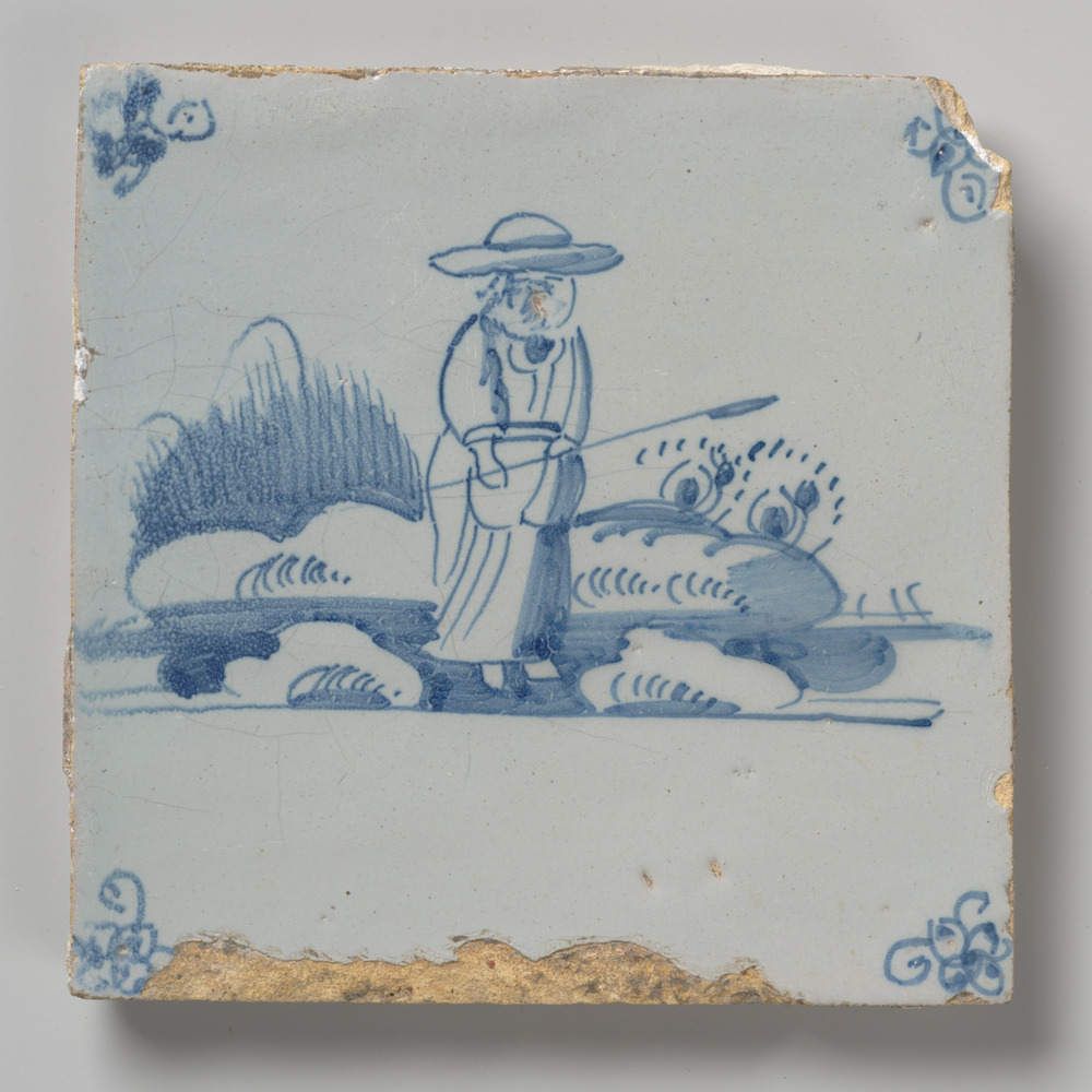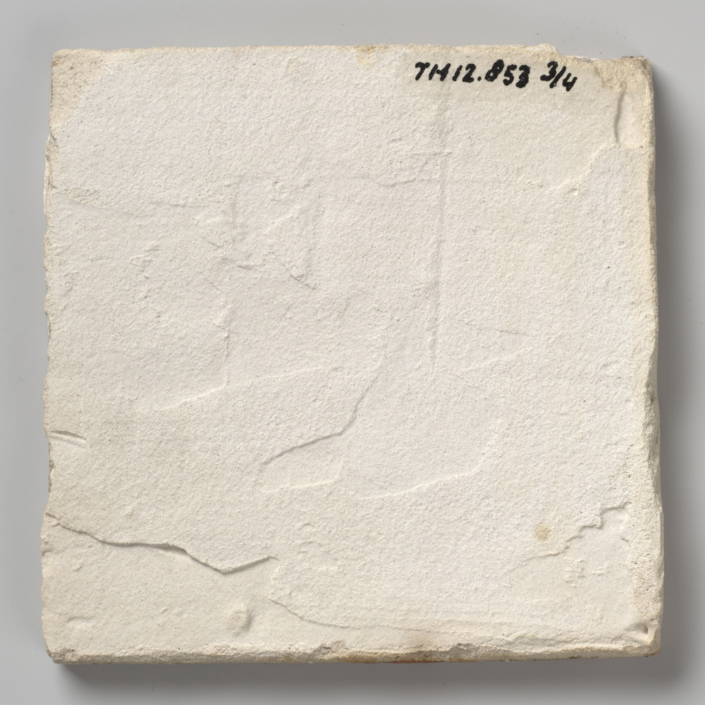tegel van aardewerk met tinglazuur, voorstellende: h...