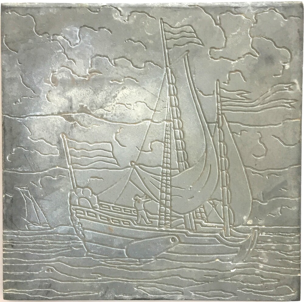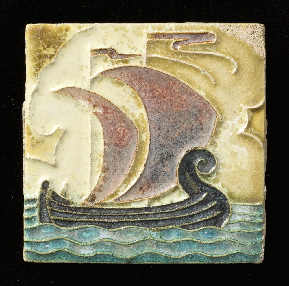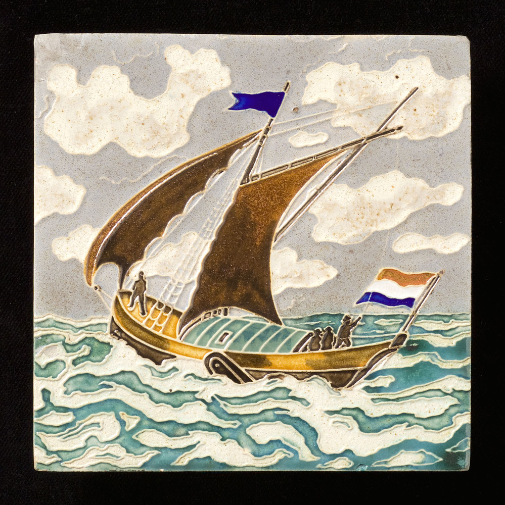 Tegel in cloisonné-techniek, met voorstelling: Fanta...