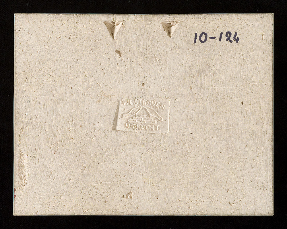 Tegel van keramiek met tinglazuur, voorstellende: De...