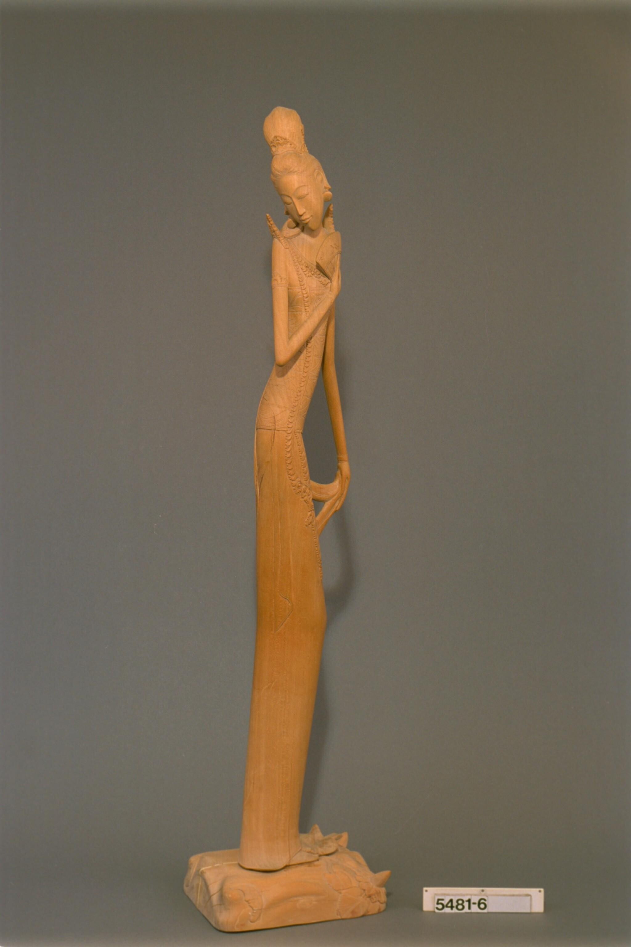 Gesnlen houten beeld in de vorm van een man in kleer...