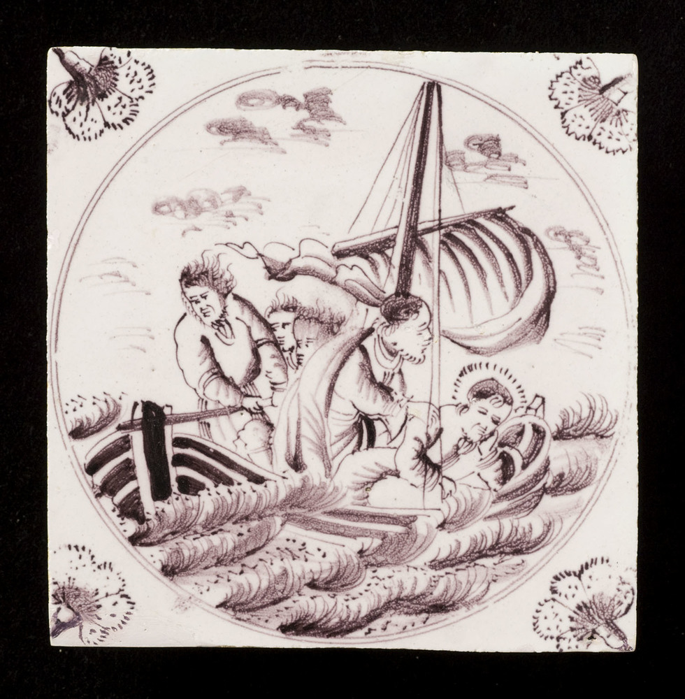 Tegel van keramiek met tinglazuur, voorstellende: Je...