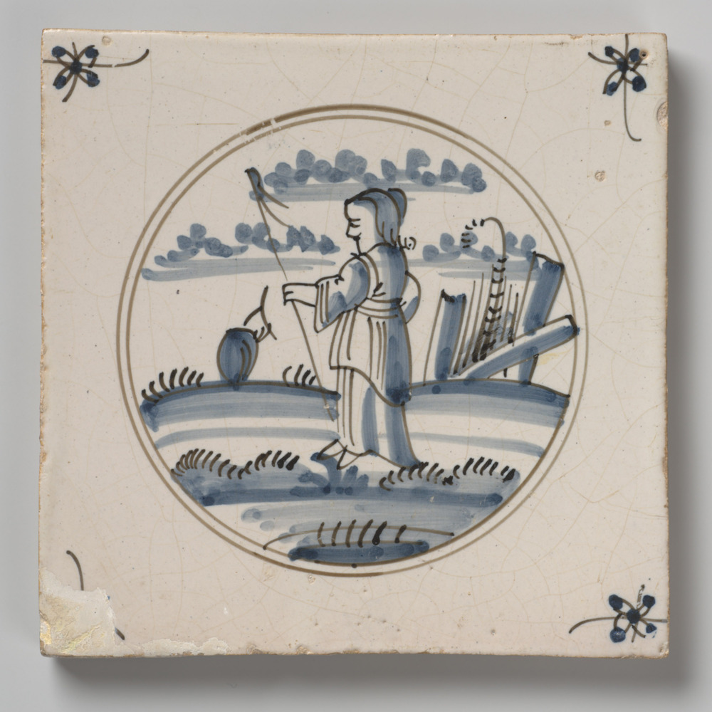 tegel van aardewerk met tinglazuur, voorstellende: h...