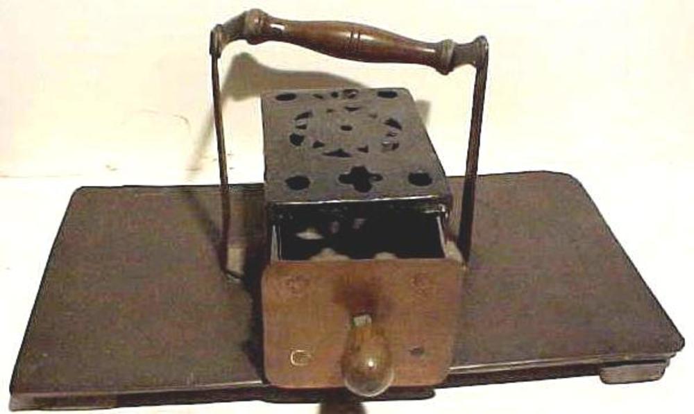 rijtuigstoof, plat model op houten voetbord op twee ...