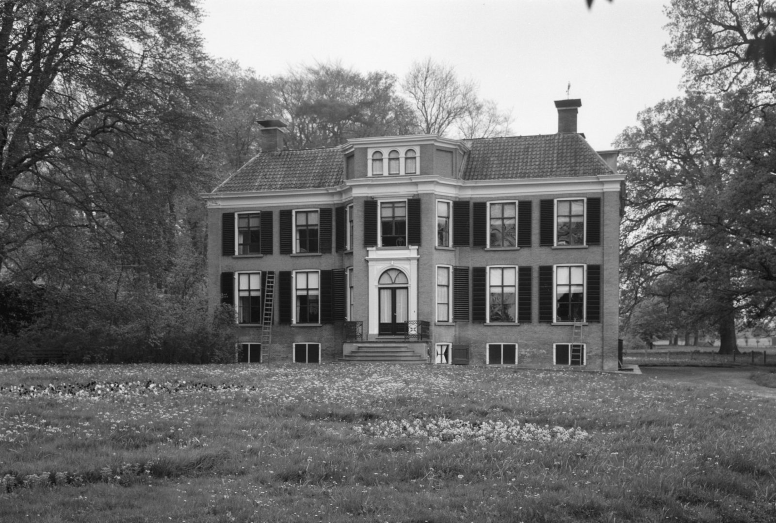 Overzicht van de voorgevel van het landhuis