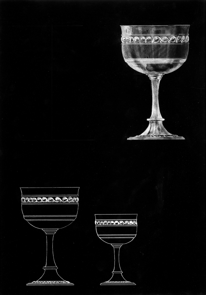Ontwerptekening in aquarel van 2 kelken, vervaardigd...