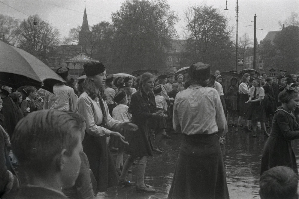 Meisjes van de Nationale Jeugdstorm in de regen op h...