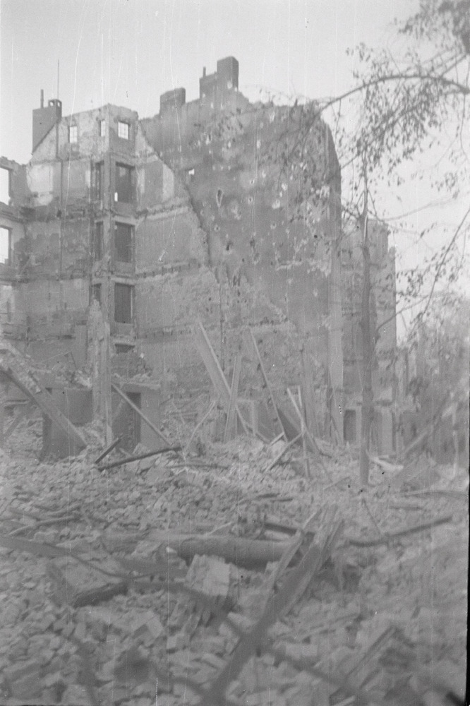 De ruïnes na een bombardement, waarschijnlijk Arnhem