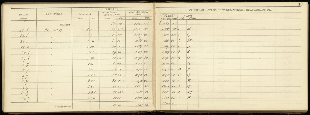 Logboek PH-NIN blad 1 (bijlage A-1)
