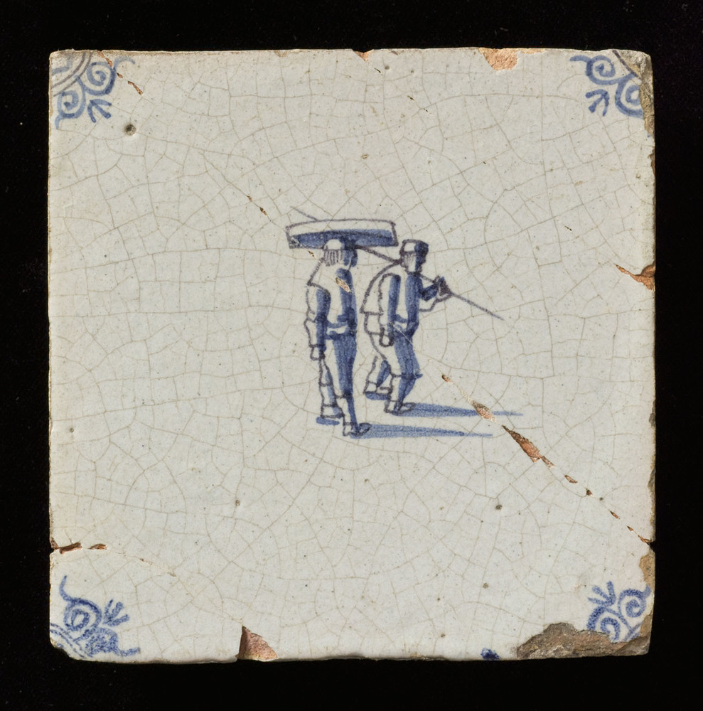 Tegel van keramiek, tinglazuur, voorstellende een be...