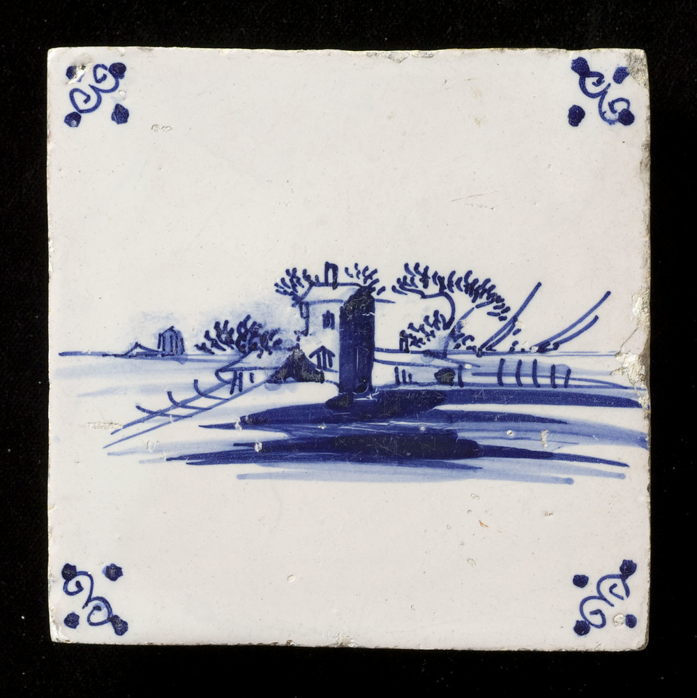 Tegel in tinglazuur voorstellende een landschap tege...