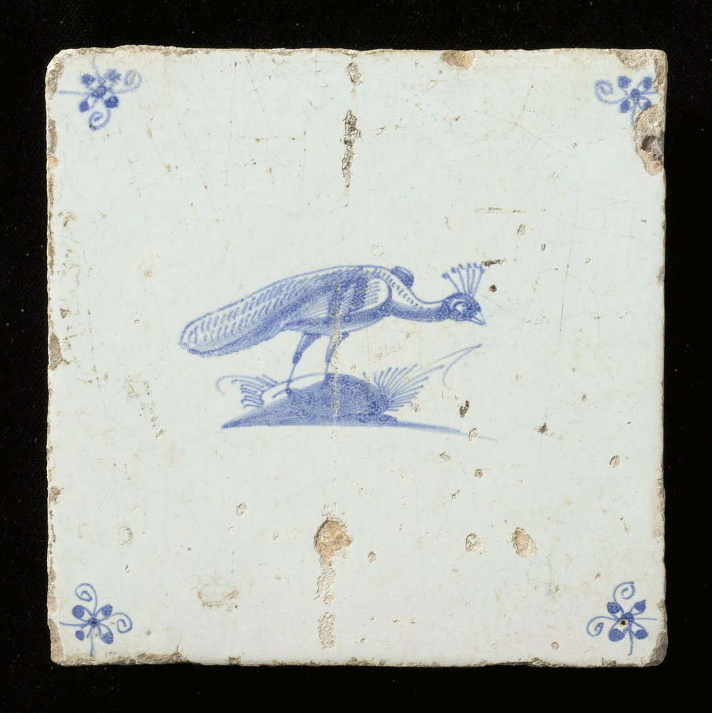 Tegel van keramiek, tinglazuur, voorstellende een vo...