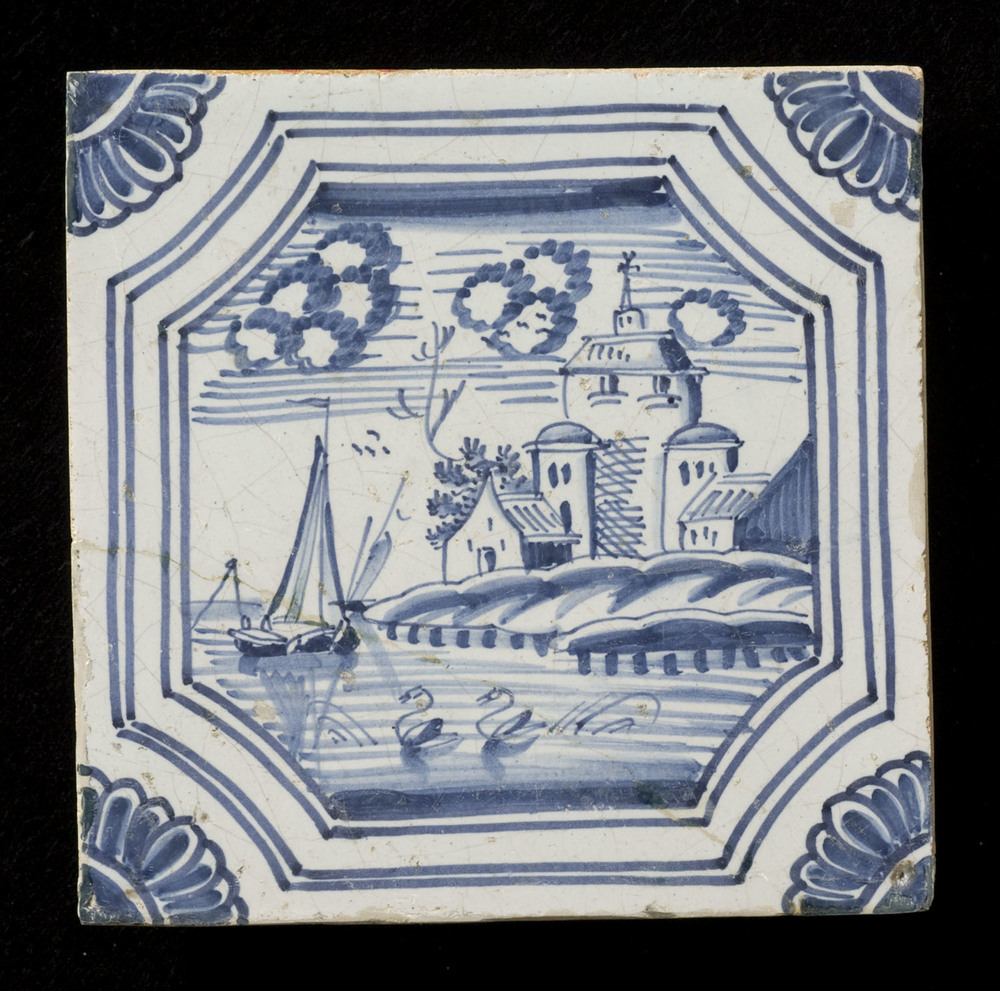 tegel van aardewerk met tinglazuur, voorstellende: h...