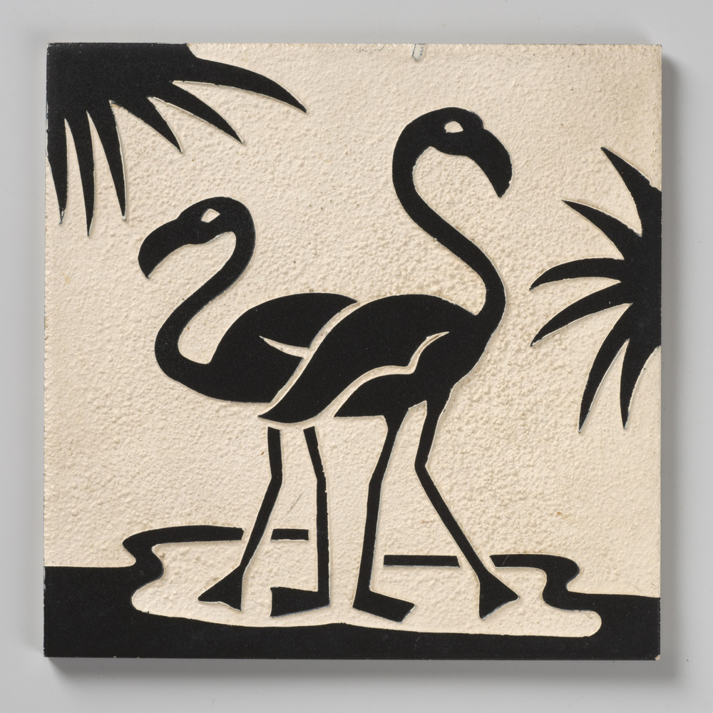 tegel van aardewerk, uitgefreesd, voorstellende: twe...