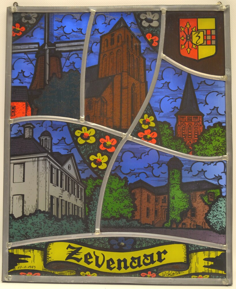 Glas-in lood raamdecoratie door W.C. Kost 1983