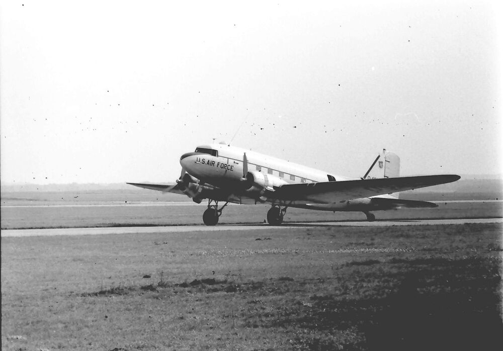 Douglas C-47B USAAF O-48073 op de rolbaan.