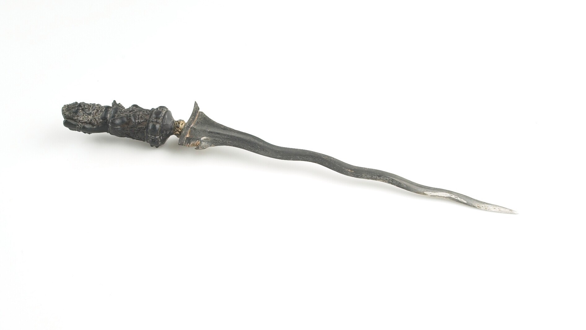 Houten krisstandaard in de vorm van Bhima met bijbeh...