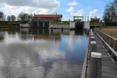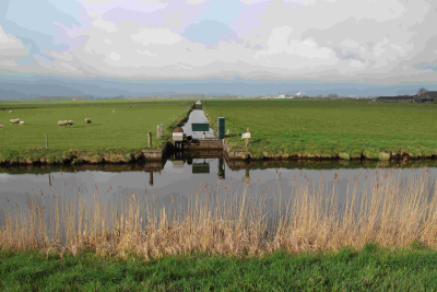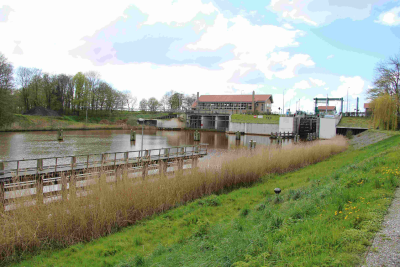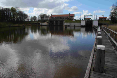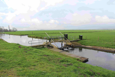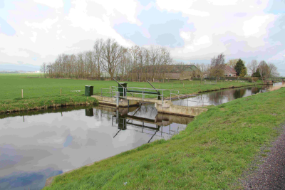 Stuw in een tocht in polder Mastenbroek, 8 april 2016.