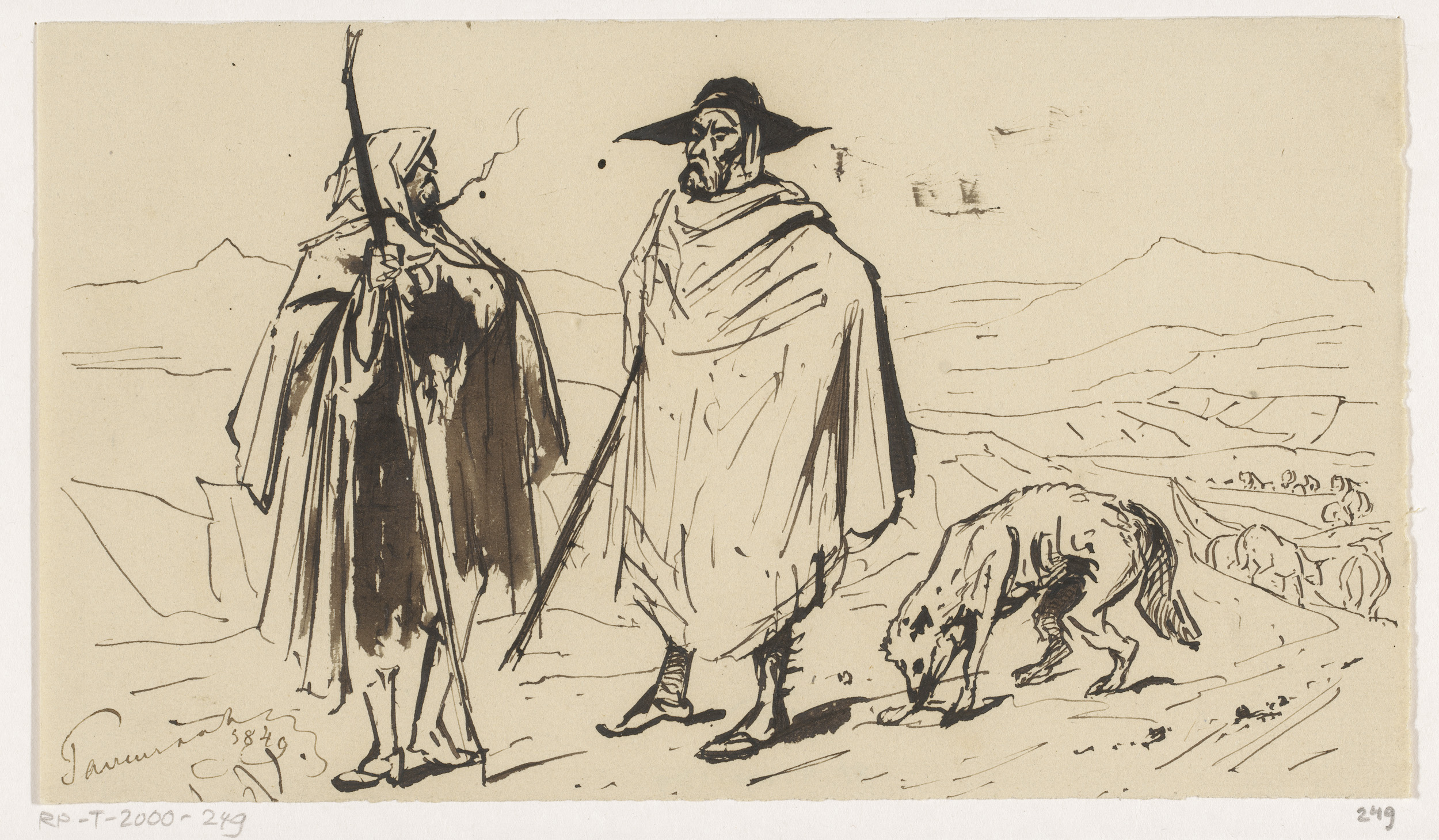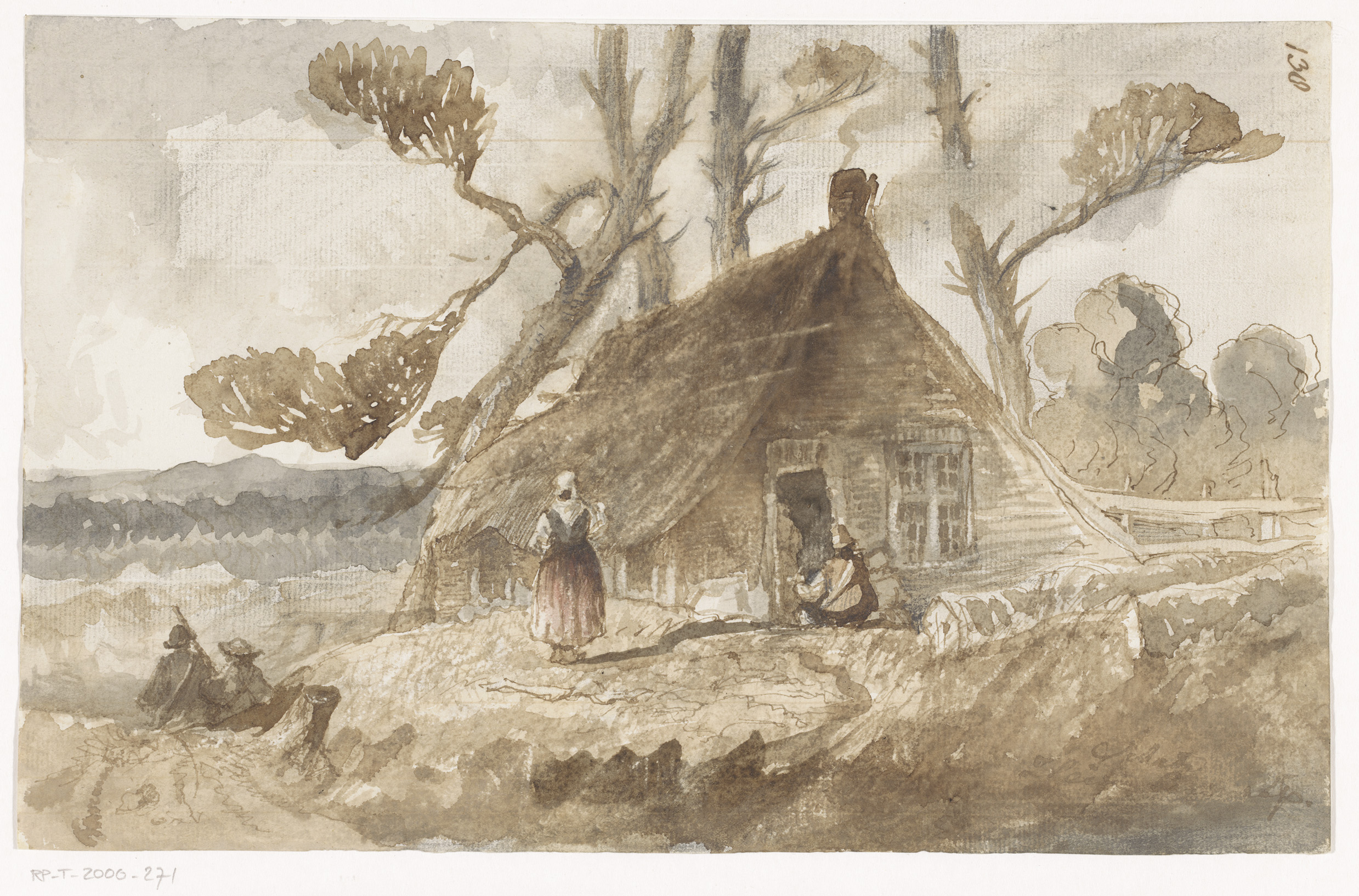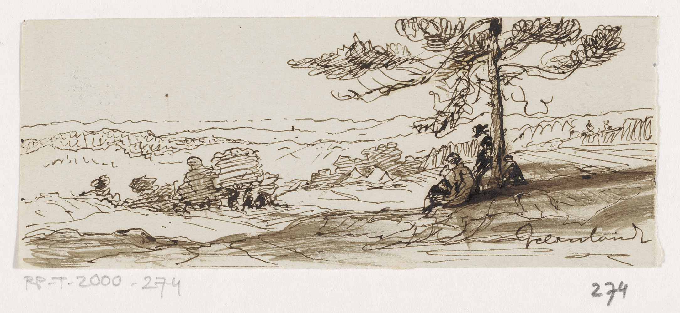 Gelders landschap met rustende jagers onder een boom