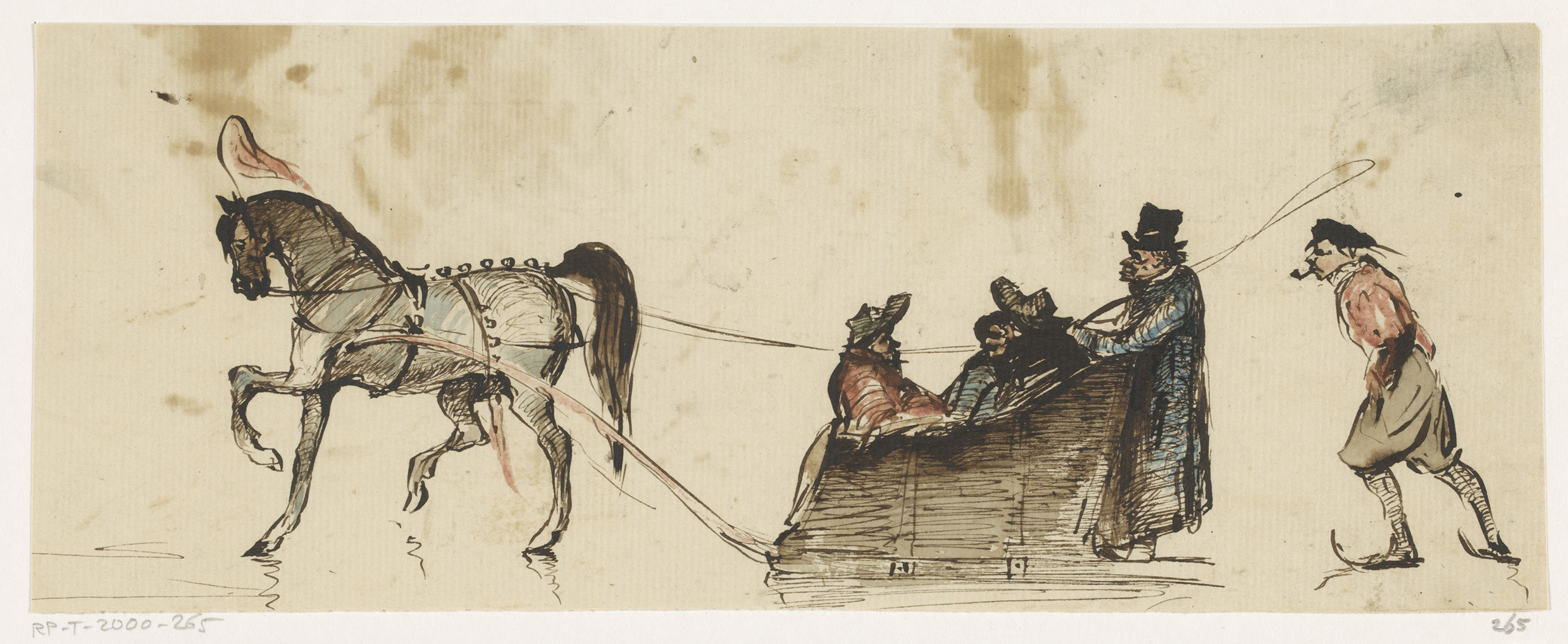 Schaatsers en arrenslee op het ijs