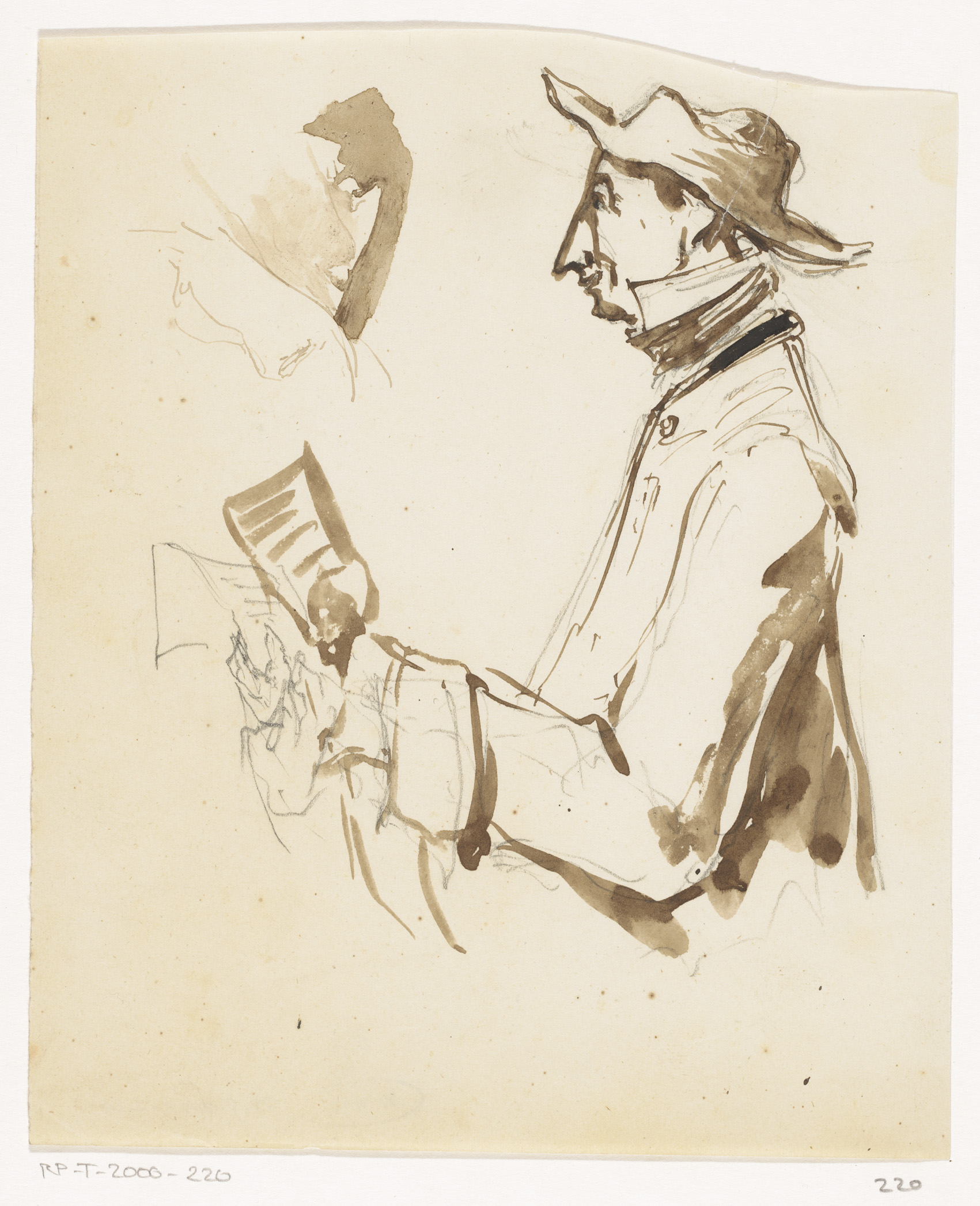 Studies van een man met brede hoed