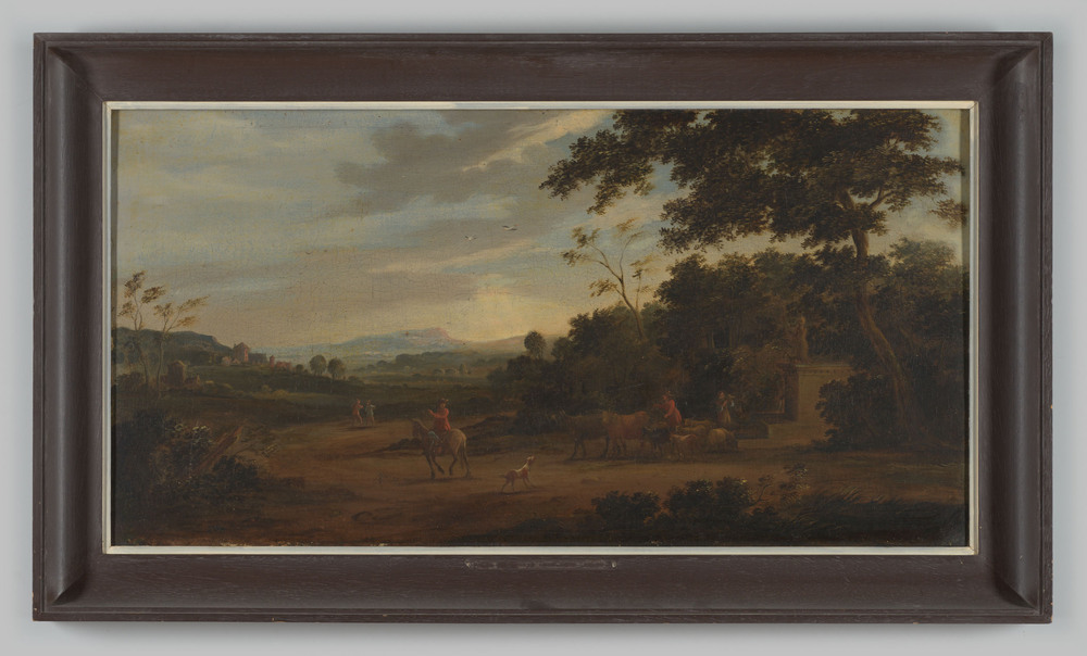 Landschap met koeien en figuren